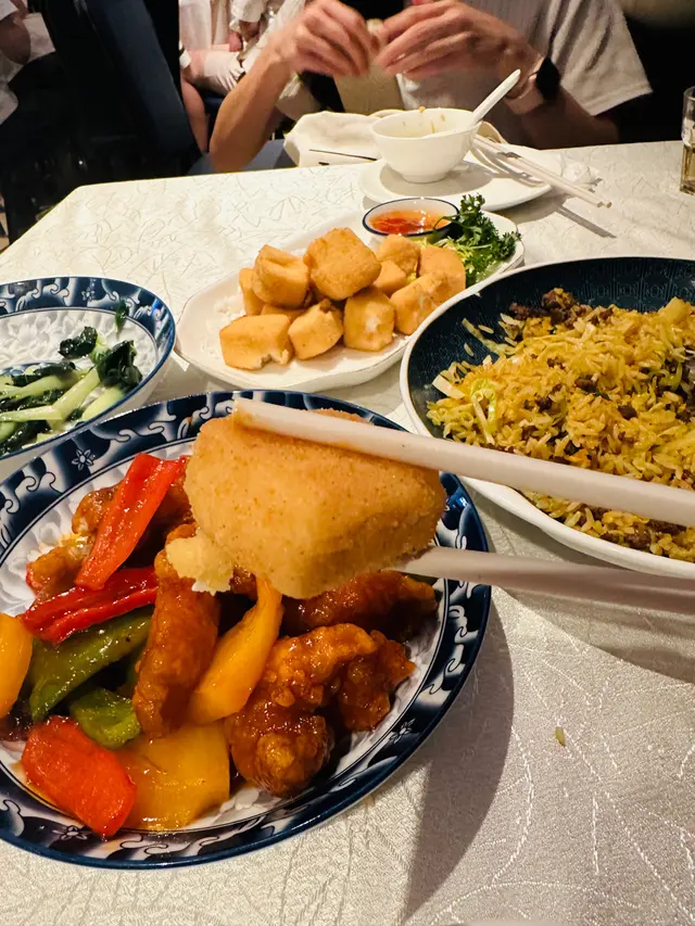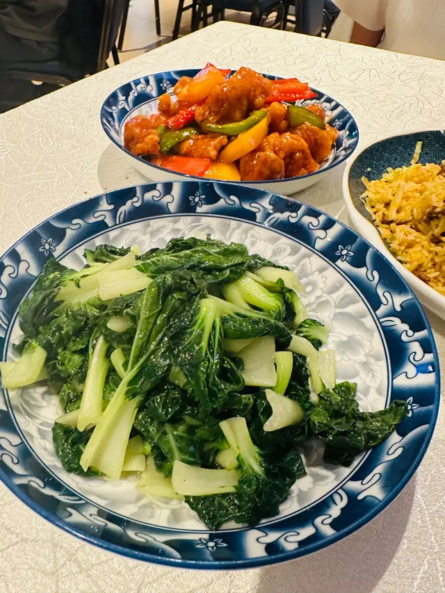 彩椒咕嚕肉酸甜開胃,豬肉外脆內軟;脆皮炸豆腐外表金黃酥脆,咬開係嫩滑豆漿心;蒜蓉炒時菜鑊氣滿滿,清爽解膩~
