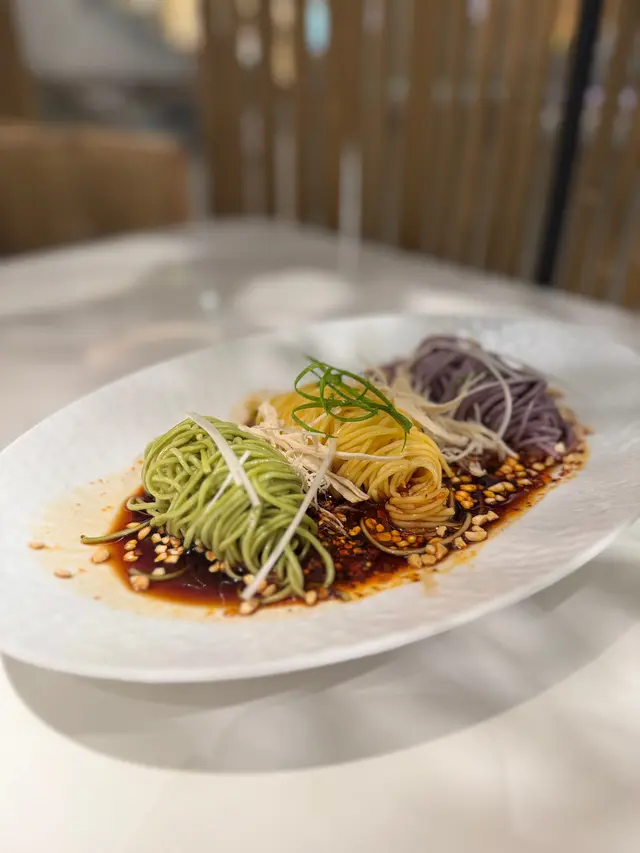 雞絲切得好幼細,三色涼麵顏色鮮艷好美靚,醋嘅酸味好突出,少少辣,拌埋花生碎增加不同層次和口感,做開胃涼菜一流