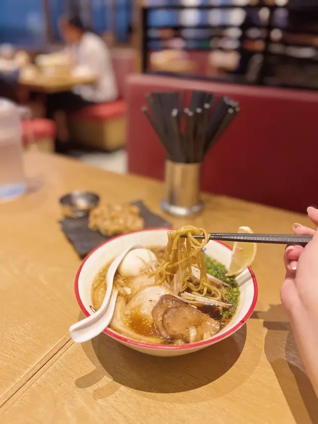 湯底選用咗黑醬油雞湯,味道香醇濃郁而帶有鮮味🤤,而且仲加入咗背脂,令到湯底更香更滑!🐮炙燒厚切牛舌片好有驚喜,食落彈牙爽口,充滿嚼勁,而且肉汁豐富,牛味香濃!🤩另外仲有卷腩叉燒同原隻玉子,叉燒唔會太肥膩,而玉子係半熟㗎,拉麵麵質軟硬適中,整體嚟講超滿意!如果對牛舌片有興趣,👏而家喺任何拉麵加$28就可以有2件!