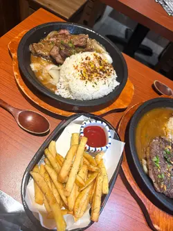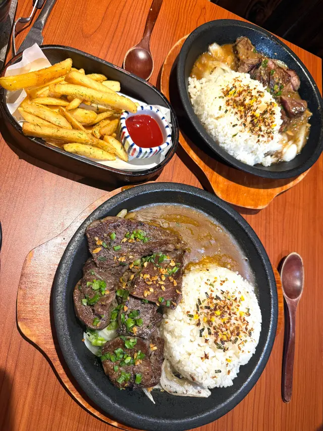 鐵板牛舌芯一上桌,滋滋聲響起,香氣撲鼻,瞬間勾起食慾!牛舌芯切得薄薄一片,入口即化,嫩滑,juicy多汁的肉汁爆發而出,帶著淡淡煙韌嚼勁,每咬一口都彈牙有勁,鐵板高溫鎖住鮮甜本味,微微焦香邊緣更添風味,配上金黃薯條,外脆內軟,鹹香脆口,完美中和牛舌的豐富口感,簡直是味蕾的狂歡派對!😍
