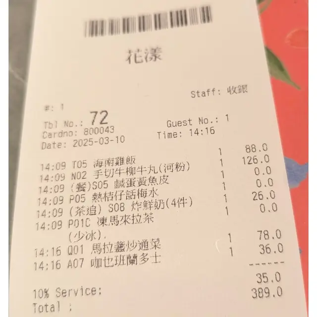 呢個無骨海南雞飯套餐唔洗加錢就有凍馬來拉茶,無骨海南雞飯個雞點大約有15舊,雞肉肉質都算嫩滑,仲有一碗蟲草花雞湯,個雞湯有少少咸!