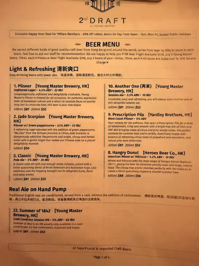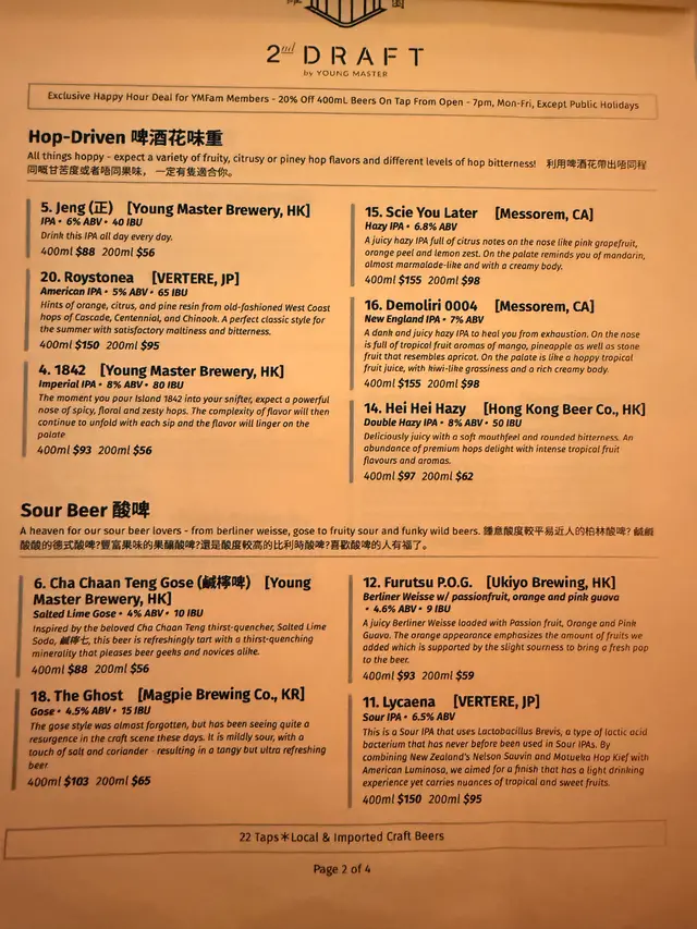 屬清新爽口類手工啤,味道清爽,酒精濃度較低,感覺juicy同新鮮,飲完會想再飲。