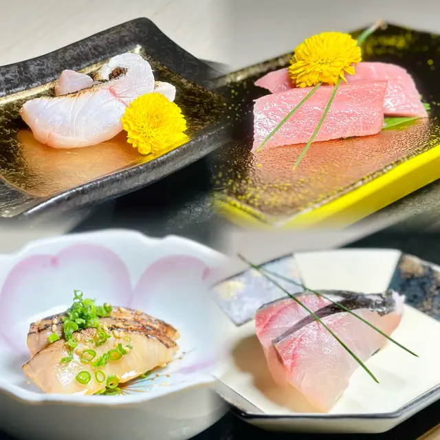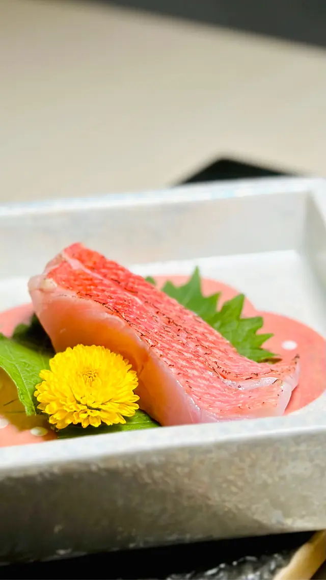 手釣的地金目鯛,鮮味保存,肉質結實,魚皮被火炙過,口感更佳。