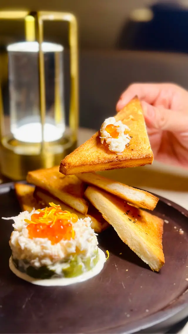 牛油果松葉蟹配風乾三日多士,完美組合。