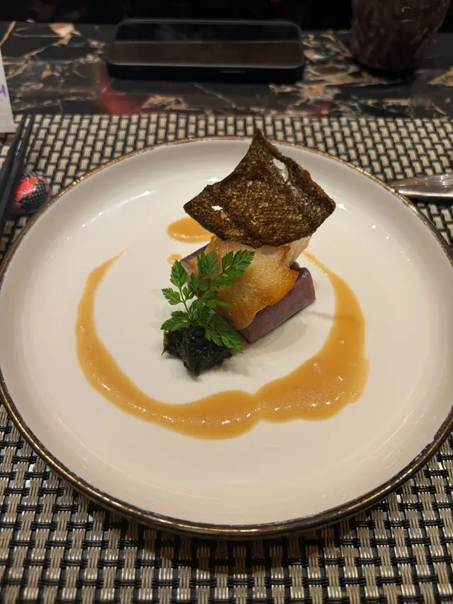 🐠 鐵板銀鱈魚|魚皮煎得香脆,肉質鮮嫩不膩,搭配茄子和牛油汁,再加上海苔醬點綴,簡直畫龍點睛✨