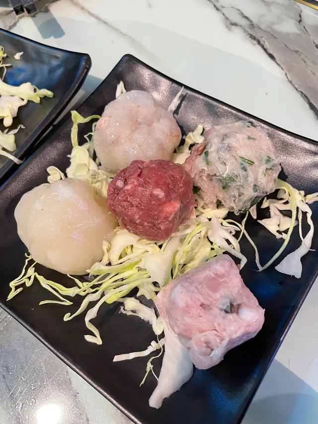 五種唔同手打丸子,比起一般打邊爐食既手打牛丸大粒好多,大大粒食落口新鮮又彈牙👍
