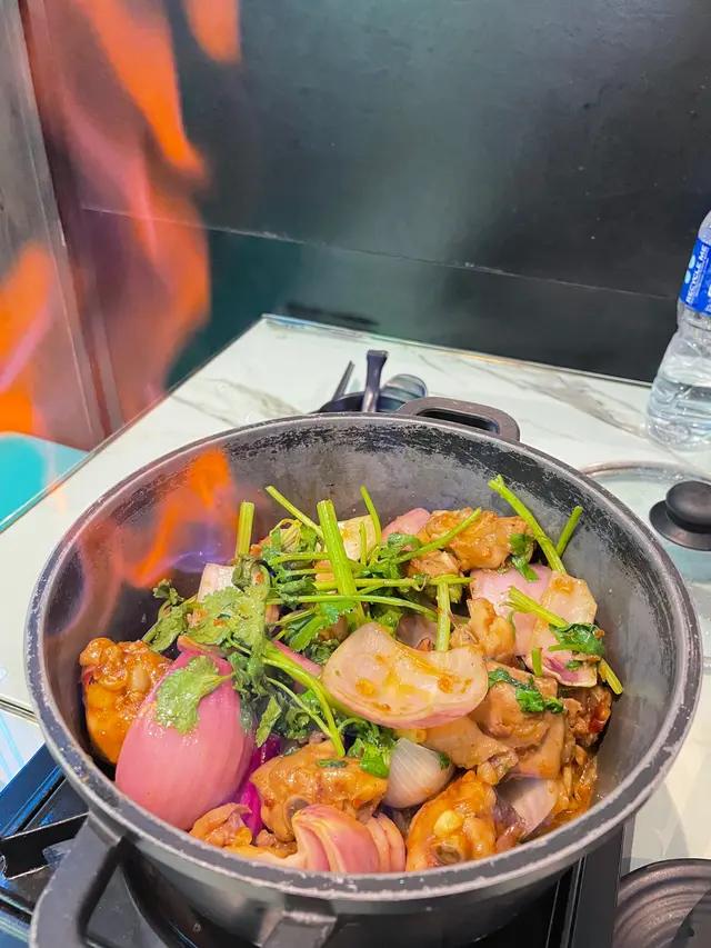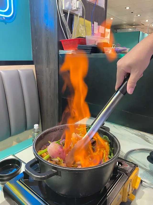 我哋點左火焰麻辣雞煲$188