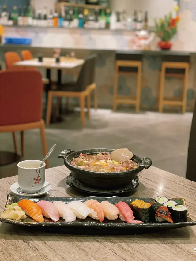 (吞拿魚中腩、帆立貝、海胆、鰻魚、鯛魚、甘蝦、油甘魚、三文魚、魷魚、青瓜卷,味噌湯,沙律,茶碗蒸海膽手卷)