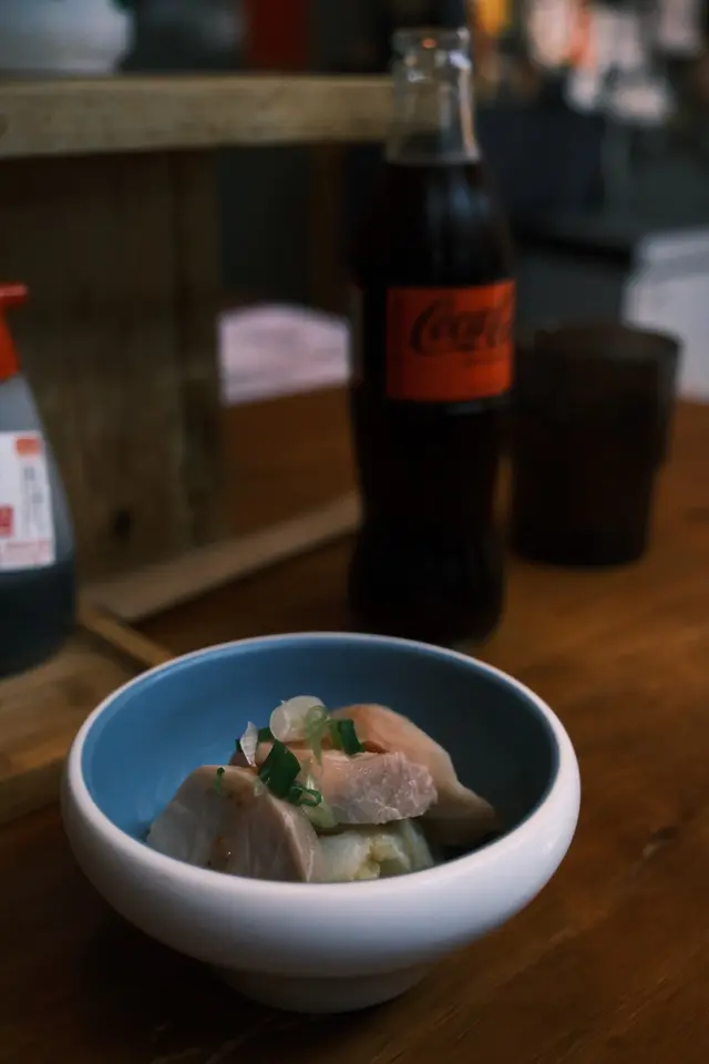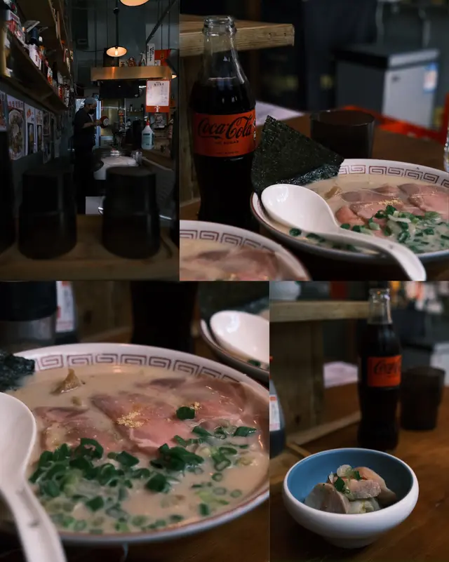 ▎博多元祖豚骨湯底清淡 鹹度適中 面頭有三大片慢煮叉燒 加上蔥花同淡淡胡椒味 食得出豬肉本身嘅香味 😋豚肉叉燒油脂比例平均 經過抽真空處理同海鹽慢煮 令肉味唔會太鹹 又可以提升豚肉鮮味 😆 麵底得地試晒兩種 博多幼麵、手搓麵 個人說偏好博多幼麵❕相對感覺似返食拉麵多啲😛而手搓麵口感 粗身有咬口 煙韌好味 但說偏咗向食緊刀削麵咁😂 慢煮雞肉沙律 口感嫩滑 😆而汽水試枱竟然喺 玻璃樽可樂 好有驚喜❗️成件事擺盤同環境 即刻好有🇯🇵食拉麵感覺👍🏻