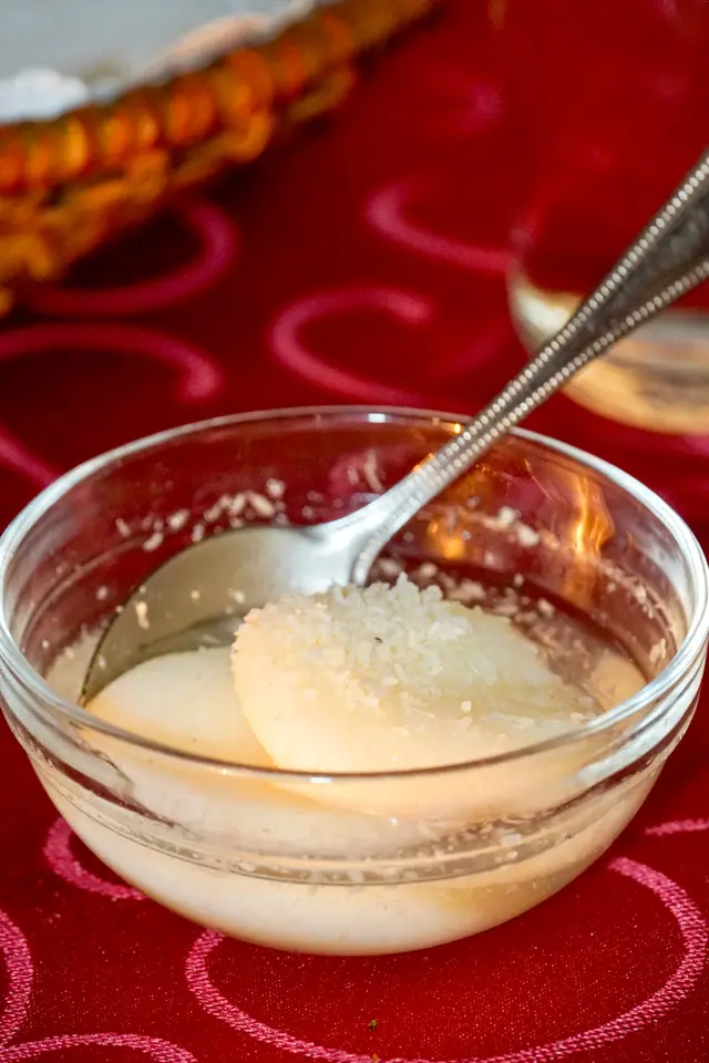 另外再浸落去椰絲糖水當中,食落有啲似鬆散嘅棉花糖質感,有陣陣椰香同牛奶香,不過就相對較貴同較甜,未必人人接受到