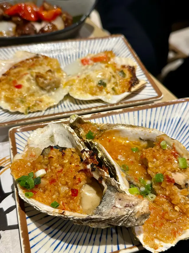 蒜燒生蠔蒜香濃郁,蠔肉大小適中,帶蠔香;芝士焗扇貝表面焗到金黃,扇貝清甜,肉質嫩滑不韌;陳年果皮鮑魚嘅果皮柑香,鮑魚肉彈牙:避風塘炒蟹嘅蒜酥、椒鹽同辣椒香好惹味,蟹肉保持水分,不油笠,配啤酒啱晒