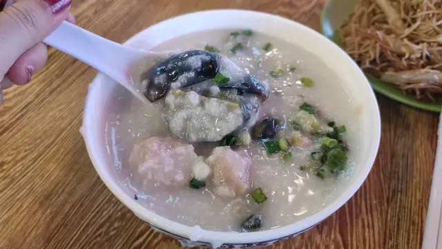 2) 皮蛋肉丸粥~粥底味道偏少少鹹,超多皮蛋及有5粒手打肉丸.材料十足.