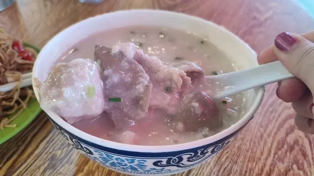 1) 生滾及第粥~媽媽的食評:豬雜全熟而且有鮮味煮得剛剛好.材料很多(豬肚/豬肉丸/豬肉片/豬腸).其中豬肚不堅韌,老人家也可食到.