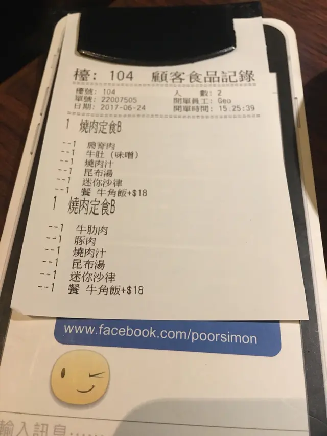 我們點了兩份定食,包含四款肉類、兩碗湯,兩份沙律、兩碗飯和兩杯飲料