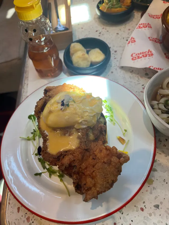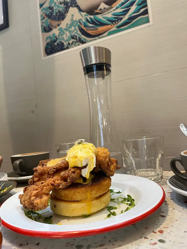 唐揚炸雞楓糖漿Pancake:好新奇嘅配搭,炸雞好大舊,呢度嘅Pancake係比較結實飽滿、海綿蛋糕d、唔係梳乎厘類型,另一番風味😛