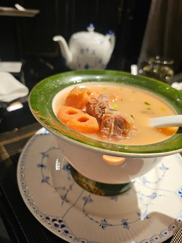 🍴 蓮藕豬骨湯:每人一盅,暖粒粒上枱,再用小火爐慢慢加熱邊煲邊飲,好sweet 又warm 。湯底清甜,蓮藕同豬骨煲得好入味。