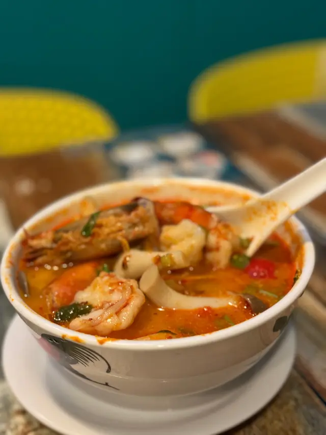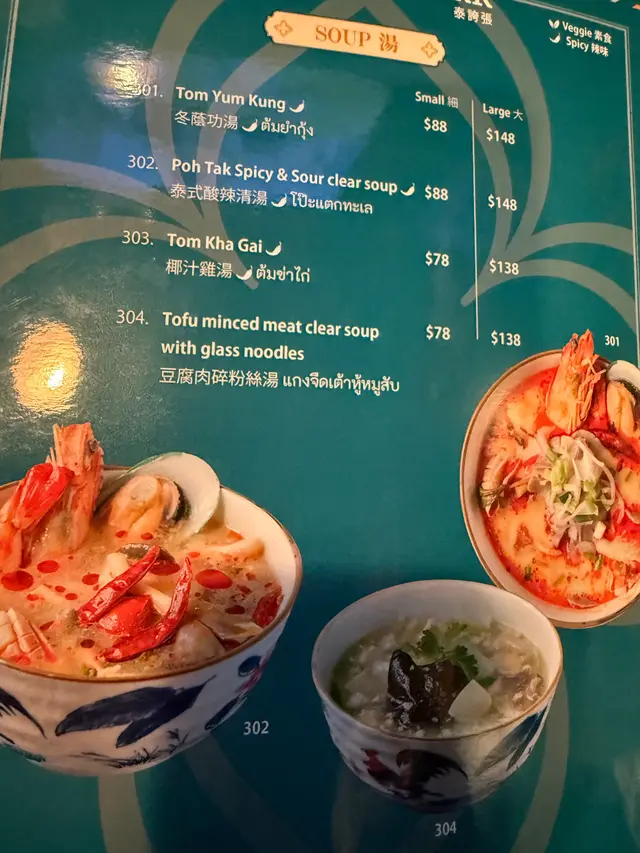 叫咗細碗嘅泰式經典湯😋鮮蝦唔夠新鮮,湯底由椰漿、檸檬葉同香茅煮成,酸辣味好足😍蝦、蕃茄仔同蘑菇嘅搭配增加口感層次感🌶️冬天飲好暖心😂