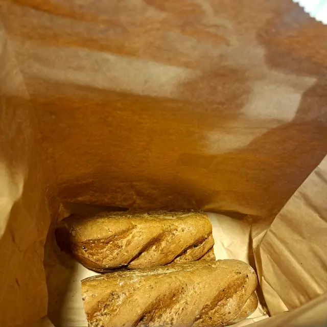 我試咗3款方式食,先試就咁食,因為返到屋企已經凍晒,個皮煙韌得嚟唔會好似其他法包咁硬身,唔可以用嚟卜頭😂,麵包厚實得嚟又鬆軟,唔會食完好似一陣風咁冇咗。黑麥芽味道有丁丁酸味同帶少少苦甘味,而且麥味較濃,係我鍾意嘅味道。跟住用光波爐輕輕焗一焗,外皮變得脆,搽牛油食一流。最後試埋夾腸仔番茄芝士焗熱食,都係好好食,果然攞獎係有原因。