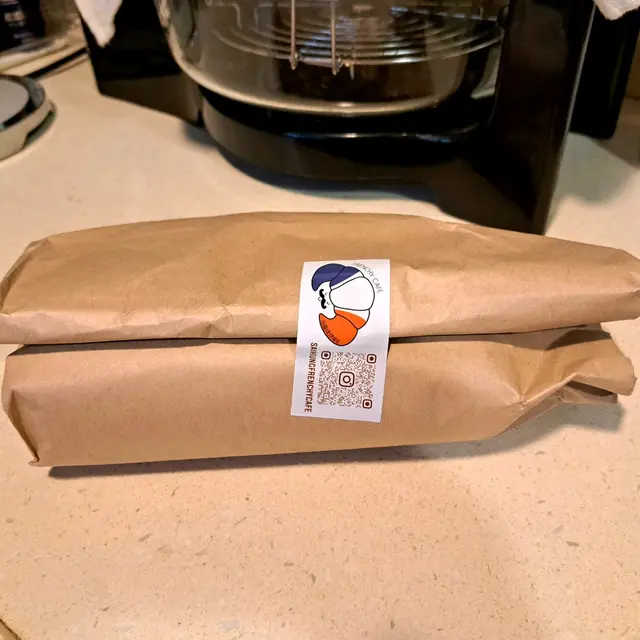 因為我要帶走,我問老闆娘可唔可以幫我切開一半,佢幫我切好用紙袋裝住,仲好有儀式感咁貼咗一個貼子。