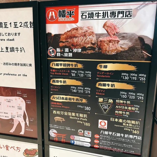 隱世美食推介 YSYSL等级42025-01-19693 浏览 关注 ✨ 今日嚟到太古站地下街搵食,「八幡平 」門口宮崎牛廣告吸引到我哋,裏面坐滿人客,餐牌有有各式各樣牛柳、牛扒、和牛、仲有雞扒豬扒同鰻魚。***** ***** ***** ***** ***** 我哋先帶上店內提供的圍巾之後,order咗兩個餐八幡平招牌牛扒🥩日本產地雞扒🐔上檯每客人有一板燒得熱烘烘的石頭🪨客人自行熱熟,材料品質上盛,肉質非常嫩口,邊玩邊食好過癮。還有一個自助餐區,有白飯飲添、有沙律菜、最重點推介有任飲的蘿蔔牛肉湯,牛肉湯好清甜,農鄉的黑胡椒味,飲完好暖胃,我飲咗5碗,真心推介好香牛肉味無味精湯。總結,整體店子招呼一流,食材夠新鮮,價錢都好合理,打算下次嚟試吓宮崎和牛呀。132以上食记乃用户个人意见 , 并不代表OpenRice之观点。赞好分享隱世美食推介 八幡平石燒牛扒專門店 (東匯坊) https://s.openrice.com/QrLT0aPrP00检举 张贴 评分5味道4环境4服务4卫生4抵食用餐途径堂食