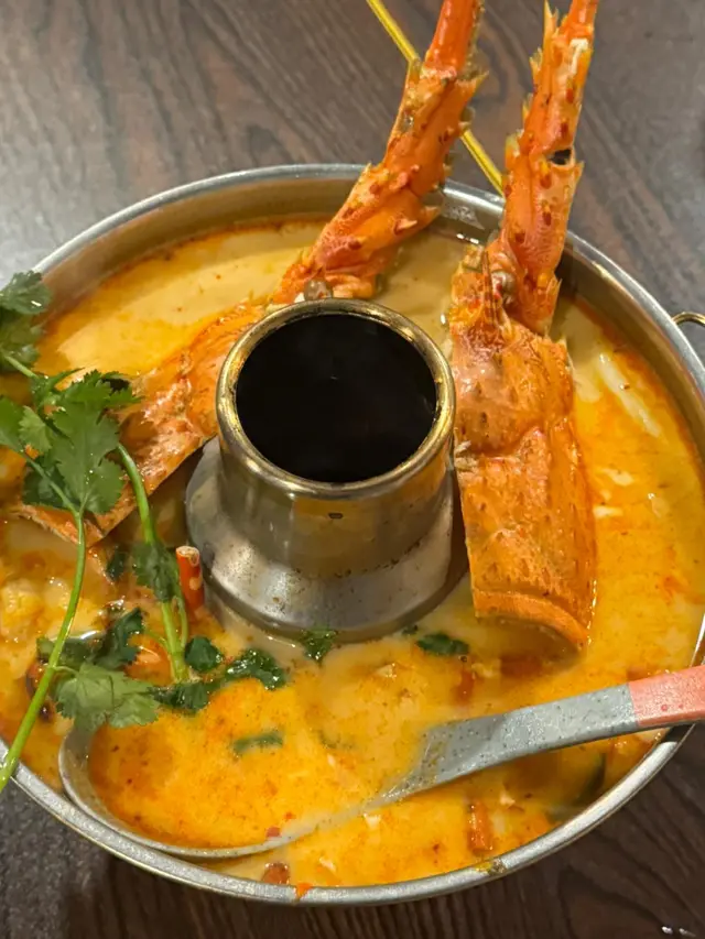 湯底用**雞骨+蝦頭熬足8個鐘**,再落**新鮮香茅南薑砸到出汁**,最殺食係*飲落先酸後辣,**椰奶香尾段先湧出嚟**——正宗曼谷玩法!同某連鎖店水溝湯講Bye bye~