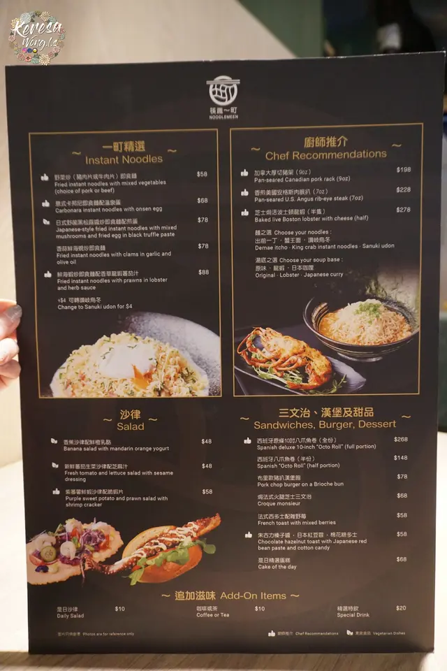 餐牌上菜式名都被包裝過, 不是一般茶餐廳的"公仔麵"款式, 令人期待