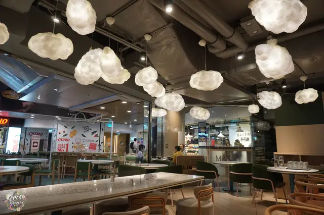 餐廳環境很開揚, 天花吊著白雲裝飾, 岩哂影相打卡。