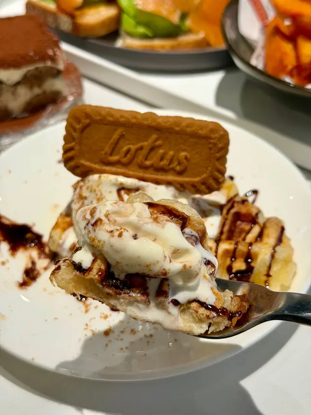 酥脆可頌與鬆餅的混合體,外脆內鬆,配上香草雪糕,冷熱交融,口感豐富,必食之選。