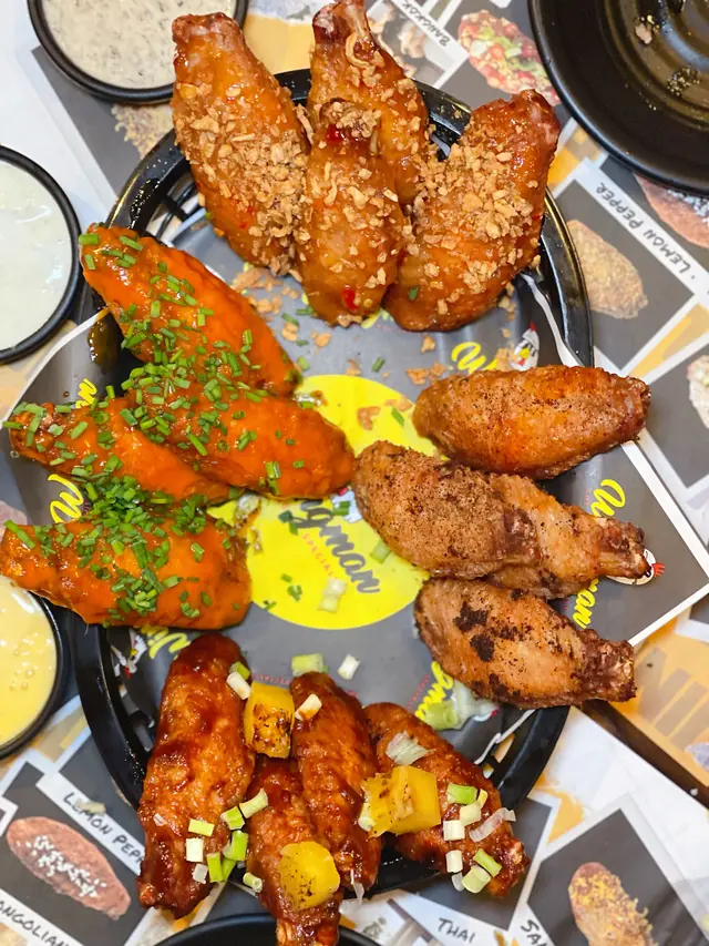 🔟款包括:BBQ蒙古燒烤味(孜然香及微辣)、泰式甜辣醬、紐奧良香粉(好似食緊辣薯片咁😆)、黑芝麻海鮮蜂蜜 (🈶️d似中式甜醬海鮮醬嘅味道)、水牛城醬、死神醬(唔食得辣所以無點)、BBQ咖啡香味 (有炭燒香味)、巴馬臣芝士蒜蓉味 (雞翼上面鋪滿芝士碎,加埋蒜蓉好惹味)、田園風味 (又係好似食緊薯片咁,不過係洋蔥酸忌廉味😍)、加勒比海香辣雞 (酸酸甜甜帶微辣,仲配埋菠蘿粒,幾特別)。