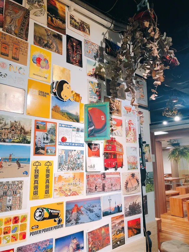 Cafe用明信片做主題💌,佈置偏簡單及帶小清新風格,有少少植物做綠化🌿。環境好闊落,有分普通餐椅區同榻榻米區。特色牆身仲痴滿哂世界名地postcard,可以眼睛去旅行🌍