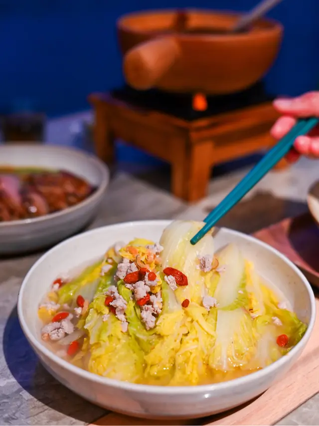 娃娃菜軟腍 吸滿蝦米肉末的鮮美上湯 好味又健康