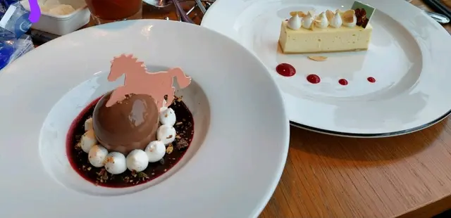 自選甜品有2款,是低糖草莓醬芝士餅和黑加倫子牛奶慕絲蛋糕,黑加倫子蛋糕賣相漂亮貼合馬會主題,影相一流,又好好味。低糖草莓芝士蛋糕,覺得少甜輕盈,芝士香醇