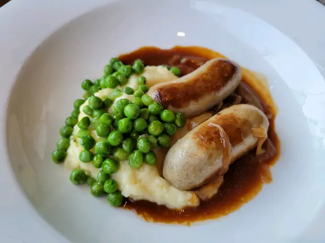 豬肉腸搭青豆薯蓉配洋蔥燒汁,份量輕盈,因為主餐牌菜式通常沒有飯或者意粉,所以薯蓉比較飽肚,口感都算香滑,豬肉腸帶微微豬肉膻。