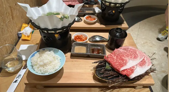 味道方面整體普通,沒有特別令人驚艷之處。湯頭偏淡,風味不太突出,和牛的品質還算可以。
