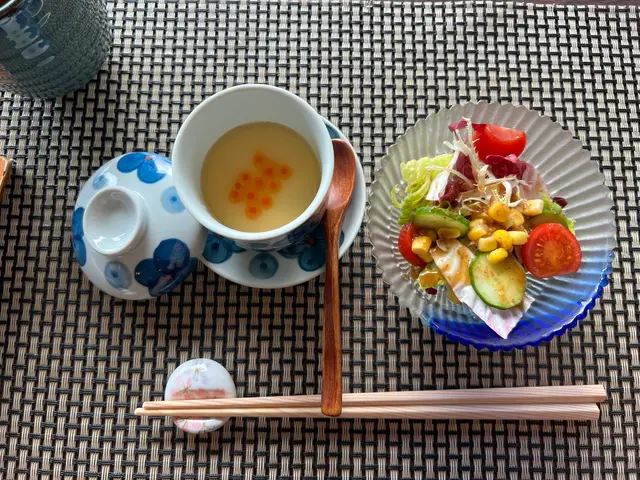 蒸蛋係我至愛,好滑上面有三文魚籽提升鮮味,沙律菜就一般無特別