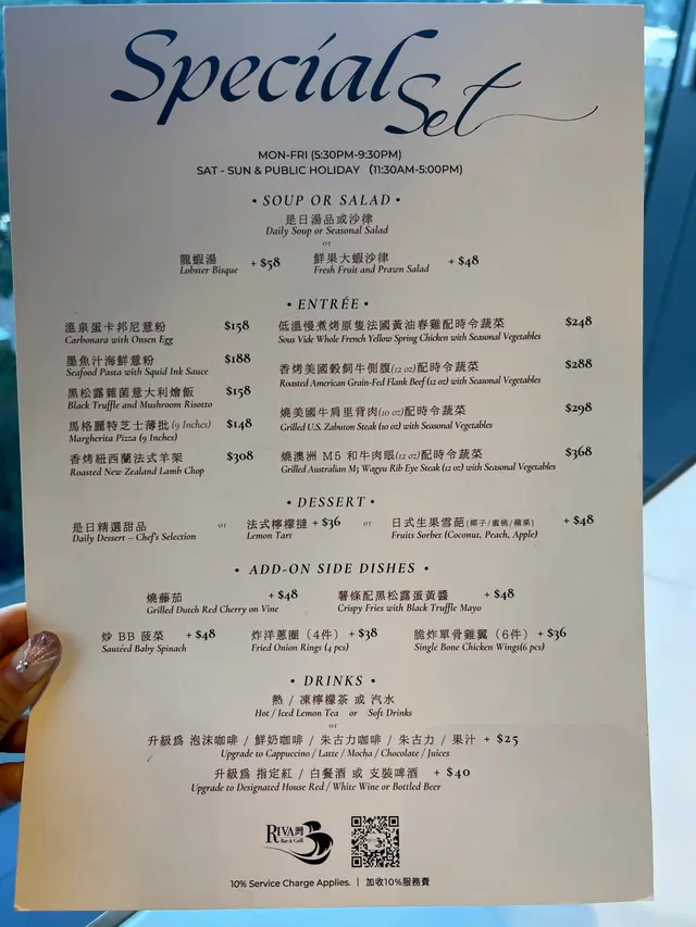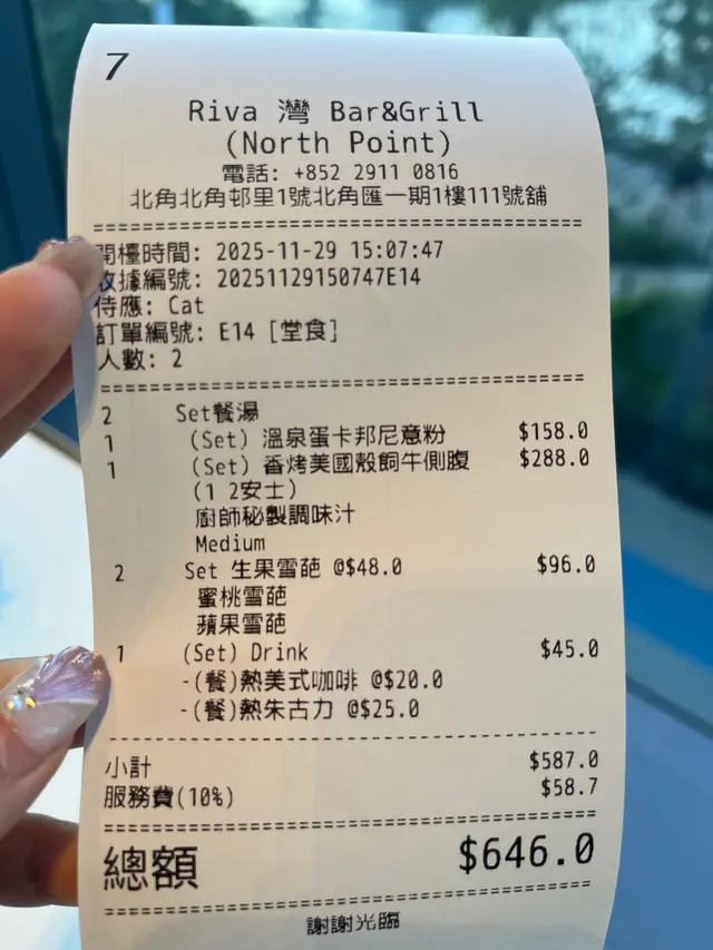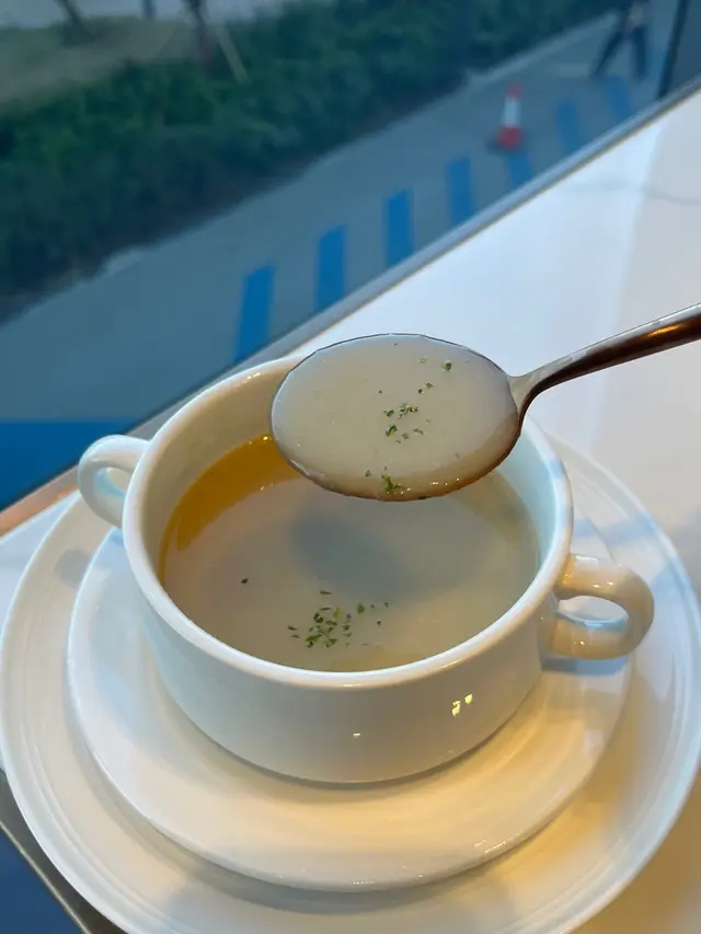 我哋各自叫咗個一人餐,有齊湯、主菜、甜品、飲品