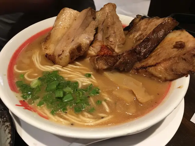 老公點了特盛燒豚肉拉麵($118),份量驚人,有四大塊叉燒那麽多!連老公都吃不下~其實性價比來說確實相對高,只比小妹那碗的貴$30但就多3塊肉~