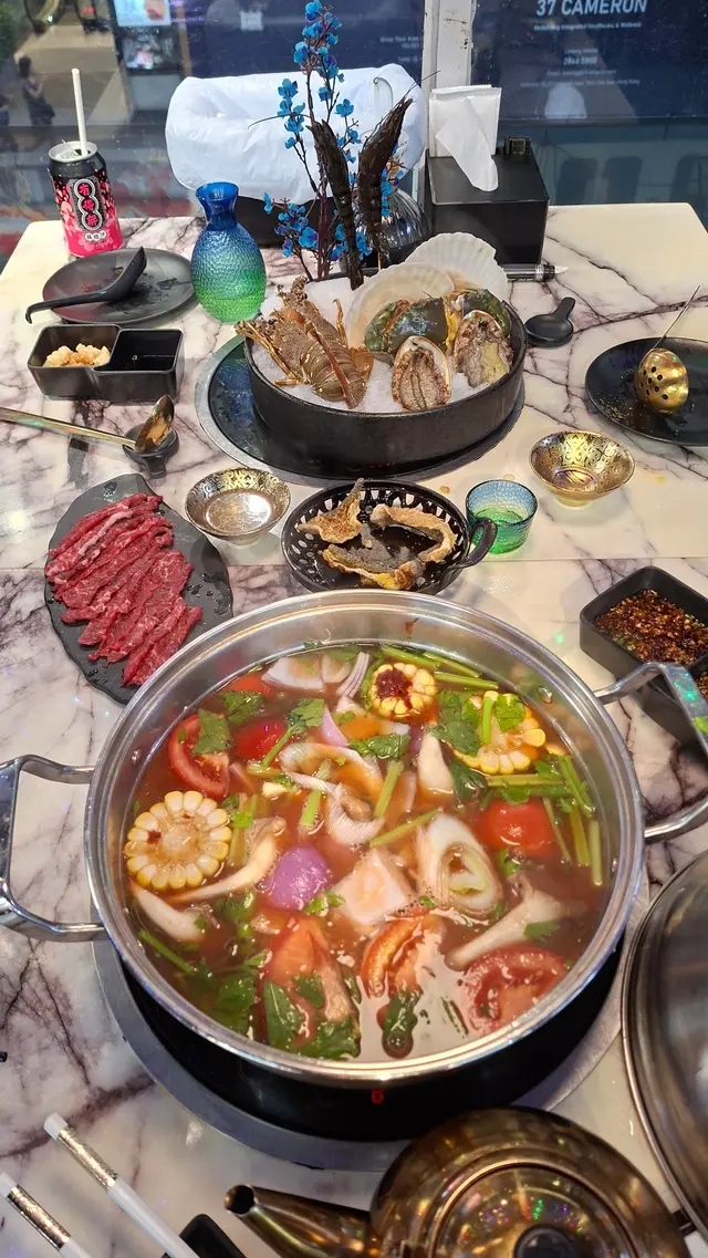 火鍋開爐了!第一件事落龍蝦,跟住鮑魚,蟹,超正呀,睇見已經流口水。吃落去,新鮮,好貨,海鮮火鍋最重要就是新鮮,這店完全做得到,太正太爽了。