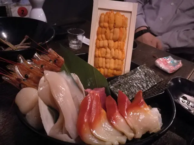 特大甘海老、北海道帶子、吞拿魚、北寄貝、日本油甘魚、海膽,除了海膽是兩位送一板外,其他的都是任食的。甘海老的體積,可算是食過咁多間,是最大。帶子,是大大粒,原粒上枱