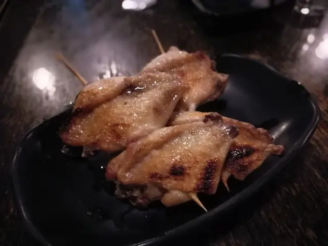 鹽燒雞翼,一份原來有兩隻,有啲誇張。為咗更入味,仲把雞翼剪開來燒,真的過份得很。