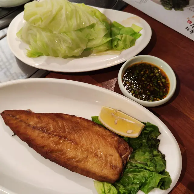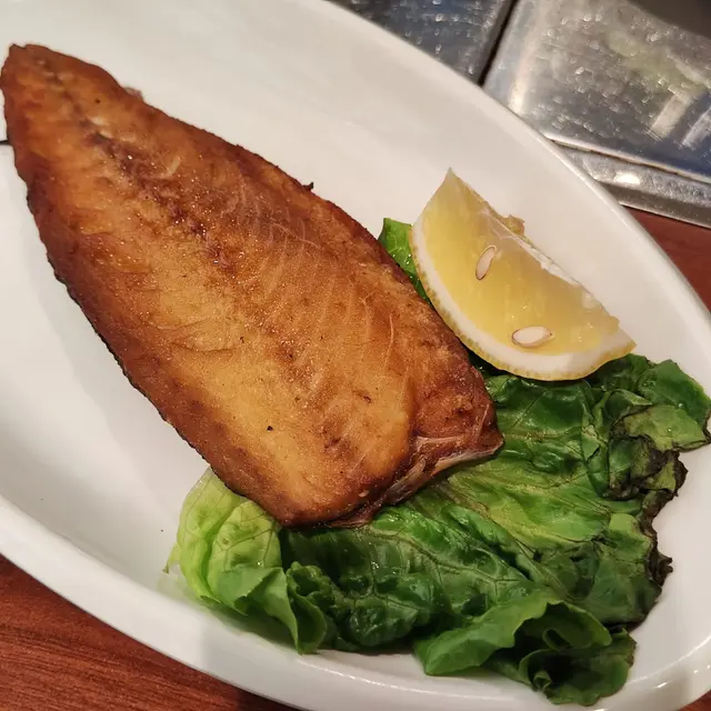 烤鯖魚:外焦內嫩,魚肉鮮美多汁,散發著誘人的香氣。經過適度的烤製,魚皮酥脆,肉質卻保持了鮮嫩的口感。搭配檸檬片和醬油,增添了清新的風味!😍😍😍