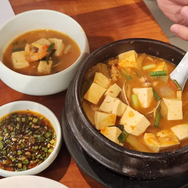 海鮮大醬湯:以豐富的海鮮為基底,湯汁濃郁,味道鮮美。大醬的濃厚風味與海鮮的鮮甜相互融合,讓人感受到韓國料理的獨特魅力。湯中還加入了豆腐和各種蔬菜,口感豐富!❤️❤️❤️