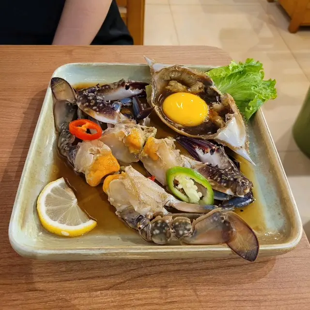 醬油韓國蟹是韓國名菜之一,把生蟹放在醬油中醃製而成,當地的吃法是將白飯加進蟹蓋內,與蟹膏一起拌著吃,非常下飯。嘴巴一咬就能輕鬆吃到蟹肉,蟹肉軟滑黏稠的獨特口感,鹹甜醬汁更帶出蟹肉甘美,伴上白飯,鹹香鮮甜,一口接一口。
