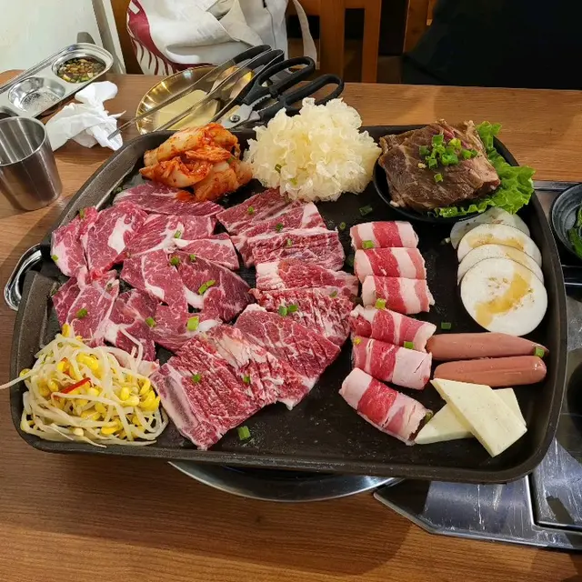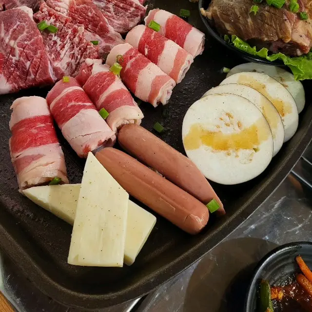 牛五花是來韓宮韓式烤肉不能錯過的肉品,牛五花烤完不管直接吃,還是沾醬吃都非常捧,牛五花嚼來不柴帶脂味,多汁好咬,簡直正中朋友的心。韓國人都會烤奶酪包著香腸一起品嚐,烤奶酪和香腸十分合拍,「芝」味無窮。