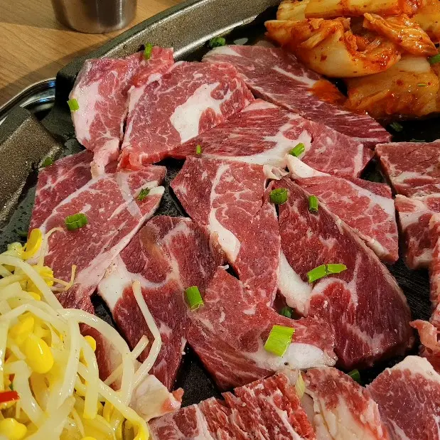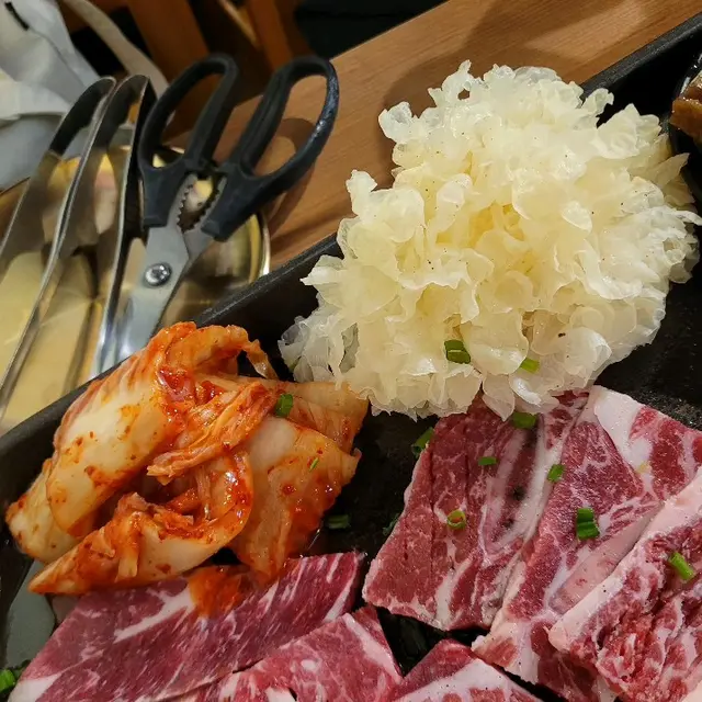 BBQ Set B牛肉的蔬菜品項同樣多元化,有泡菜、雪耳、茄子及荳芽,菜蔬味道和咬嚼感不盡相同,展現出千變萬化的味美,張開嘴巴一口口吃下,天然的菜甜鮮與酸辣於嘴裡爆發開來。