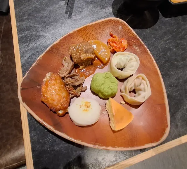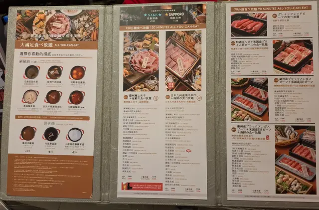 火鍋湯底有多款選擇,亦有北海道昆布湯、秘製牛肉清湯、完熟番茄濃湯、黑蒜豚骨湯、日式牛骨濃湯(微辛)及川椒麻辣湯(辛辣)等等,想一次過試2款湯底亦可 +$10。