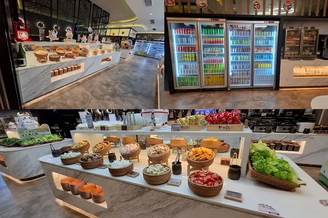 自助區擺放多種食物及飲品供應 : 有機菇菌、本地有機農耕蔬菜、新鮮丸類、粉麵、醬料、關東煮、前菜小食、湯品、水果、特飲、雪糕雪條、甜點等等,款式實在太吸引啦。