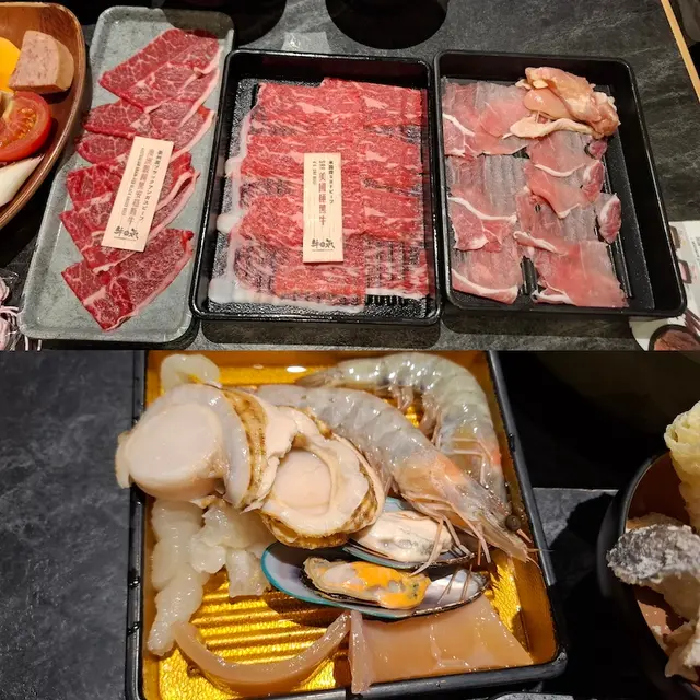 揀選鴛鴦湯底,北海道昆布湯清甜味道,以及黑蒜豚骨湯,味道濃厚豐腴,十分鮮味,濃而不膩,香氣十足,配料食材新鮮,放入湯燙一燙,吸收晒海鮮湯底嘅精華,食起上嚟更鮮甜更好味。