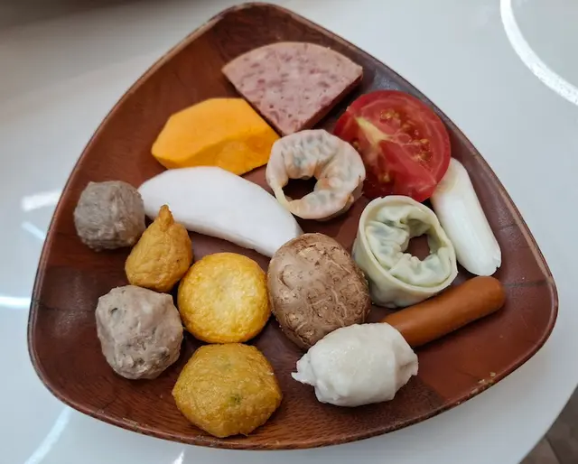年糕放入火鍋湯底一陣,直至變到軟身即可食用。年糕煙煙韌韌,有嚼口,吸入湯底更美味。