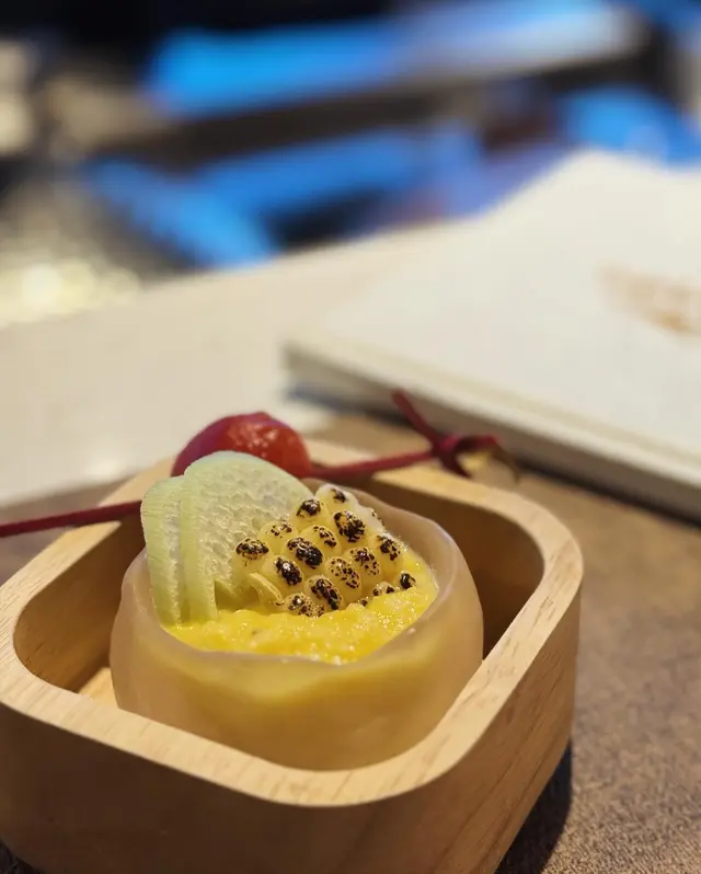 即整即製既蛋碗蒸,口感相當柔滑,入口即融 🤤 表面鋪上一層龍蝦汁,味道濃郁,碗中又有紫蘇作為調味,帶來清新之意 🌱
